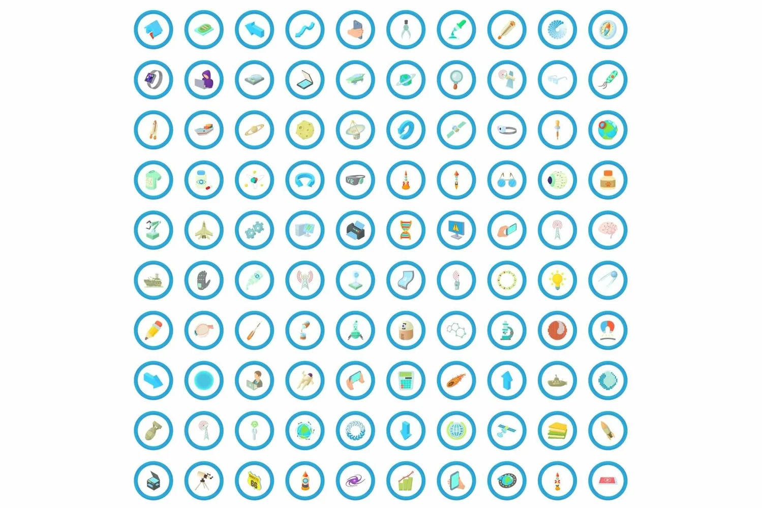 Similar Design Products to 100 science icons set, cartoon style