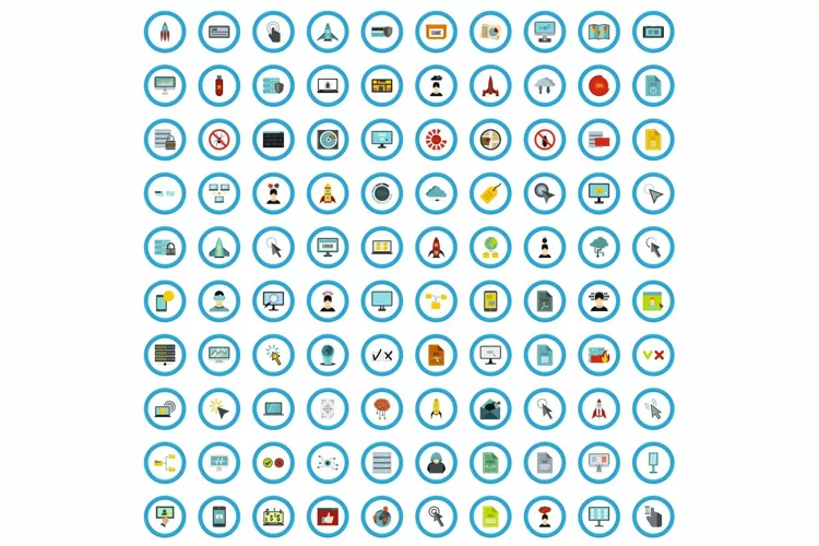 100 software icons set, flat style example image 1
