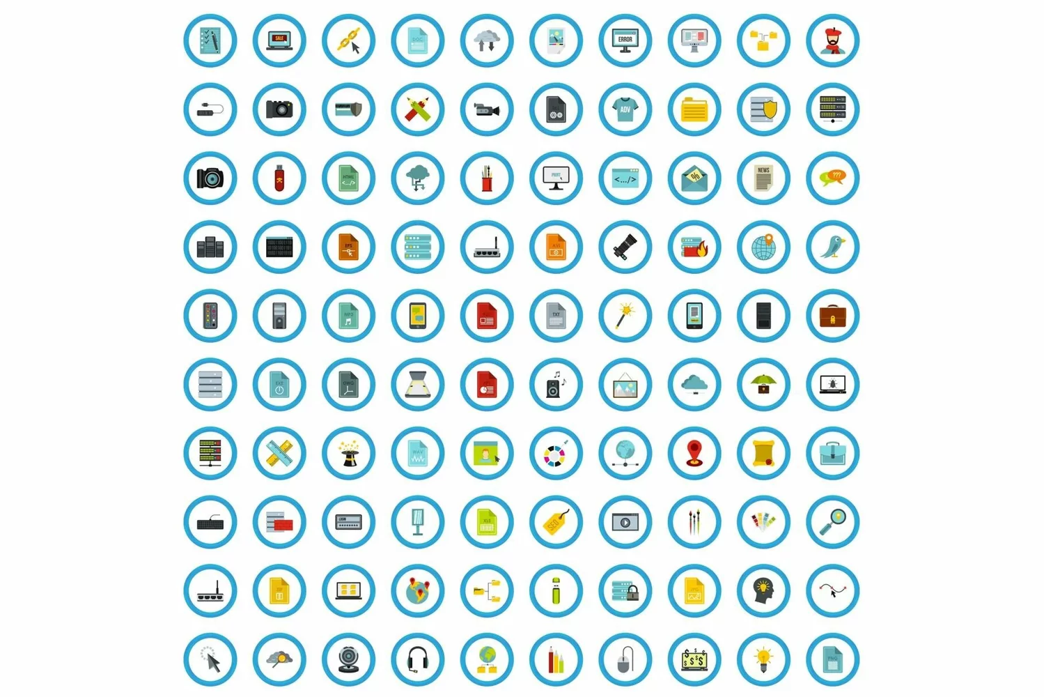 Illustration Flat Vector Media Icons Collection Web Design Set Internet Development