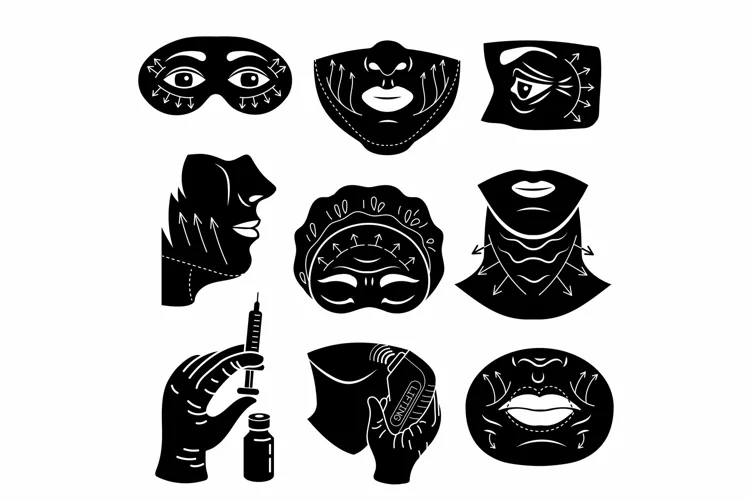 Vector Simple Black Skin Icons Set Isolated Face Lifting Lift
