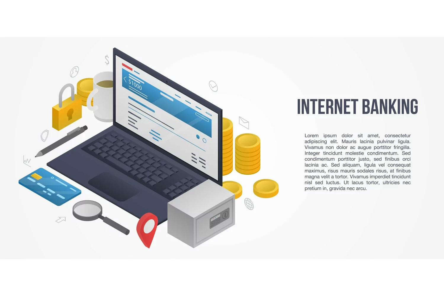 Internet banking concept banner, flat style