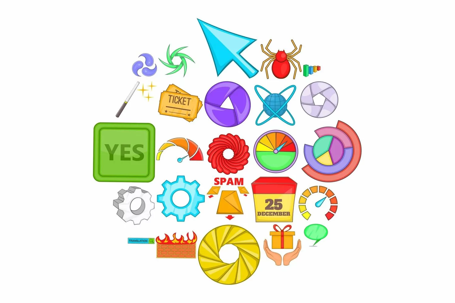 Web button icons set. Cartoon set of 25 web button vector icons for web isolated on white background