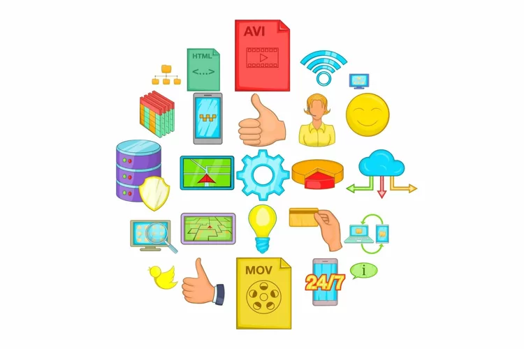 Illustration Cartoon Vector Icons Digital Set Internet Online Isolated Store