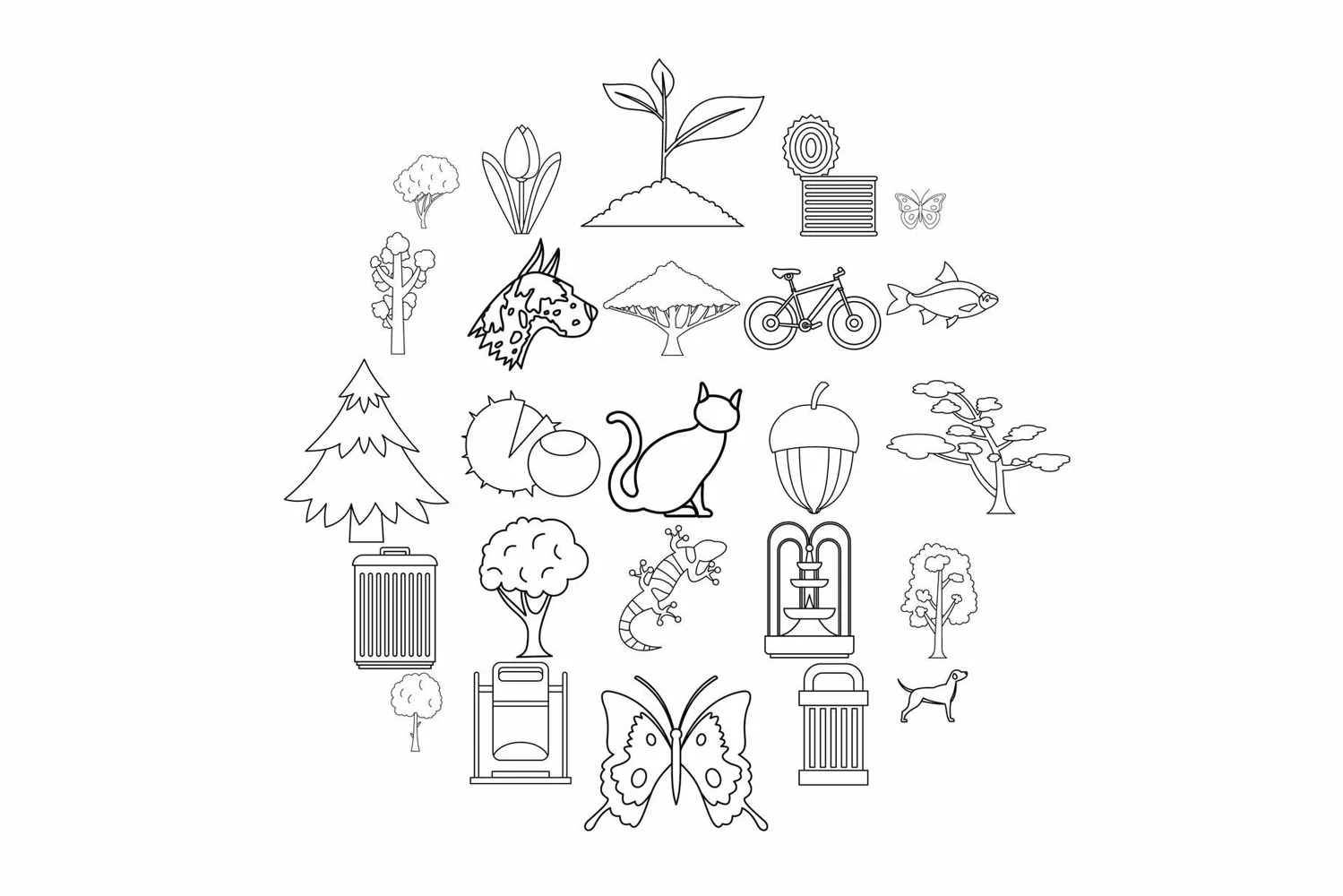 Illustration Line Thin Vector Outline Nature Icons Fresh Energy Set