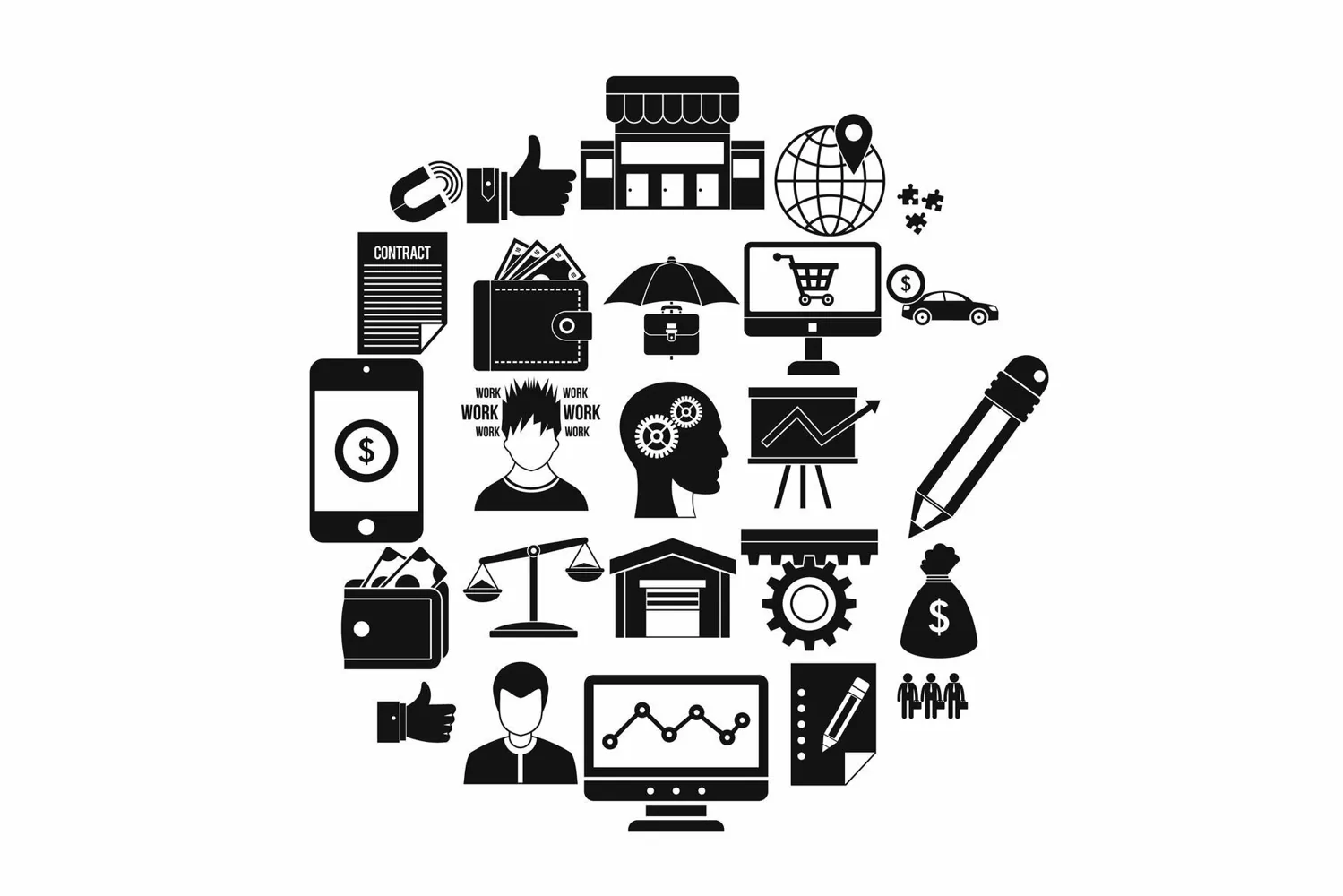 Illustration Vector Simple Black Business Icons Set Isolated Workshop People