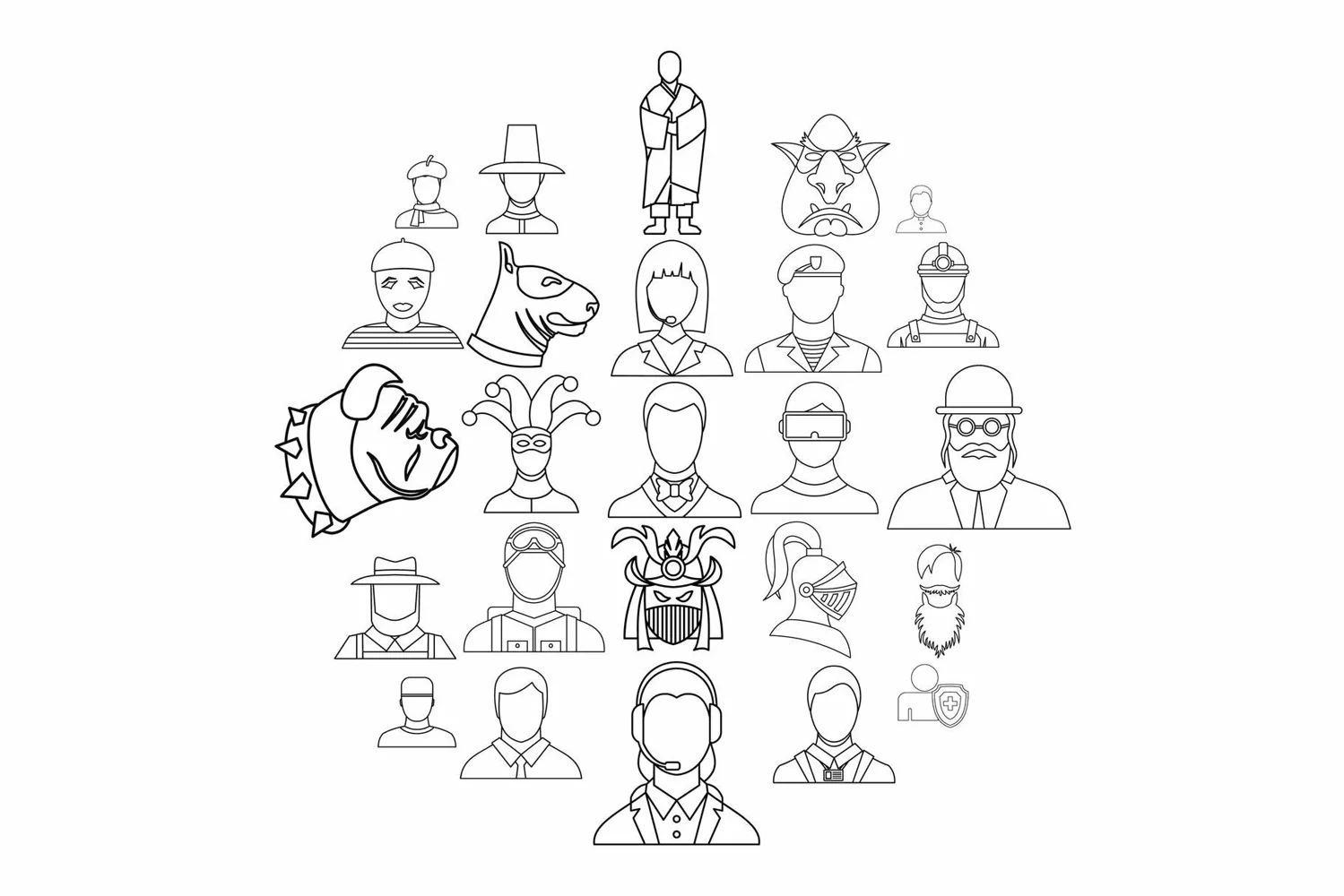 Illustration Line Thin Vector Outline Icons Set Isolated Face People
