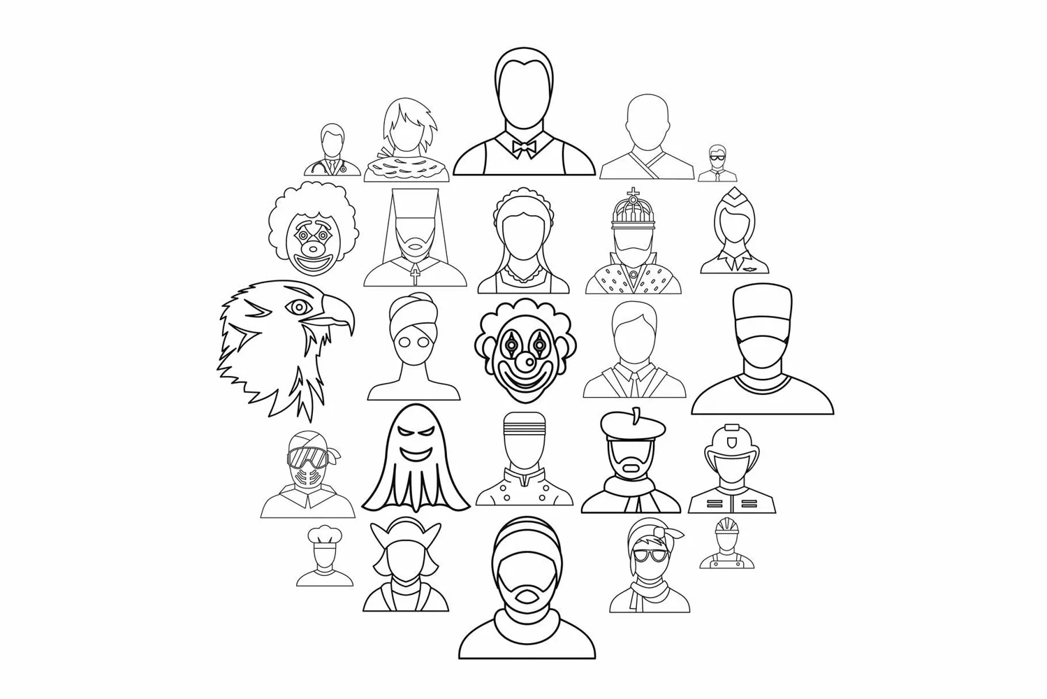 Illustration Line Thin Vector Outline Icons Set Isolated Face Avatar