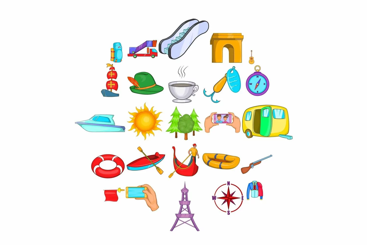 Similar Design Products to Hitchhiking icons set, cartoon style