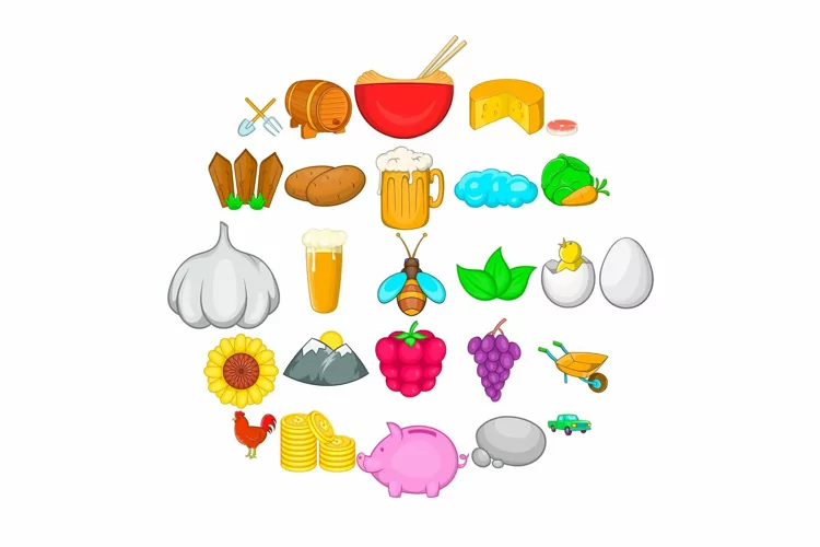 Illustration Cartoon Vector Honey Tree Icons Set Isolated Wood Agriculture