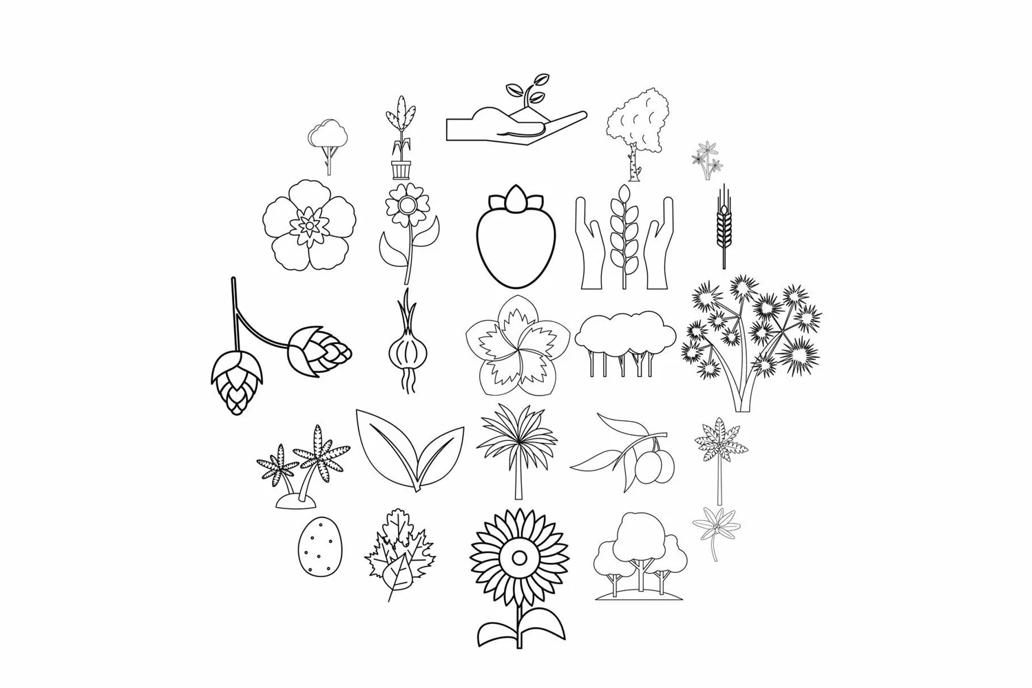Illustration Natural Line Thin Vector Outline Nature Green Icons Set