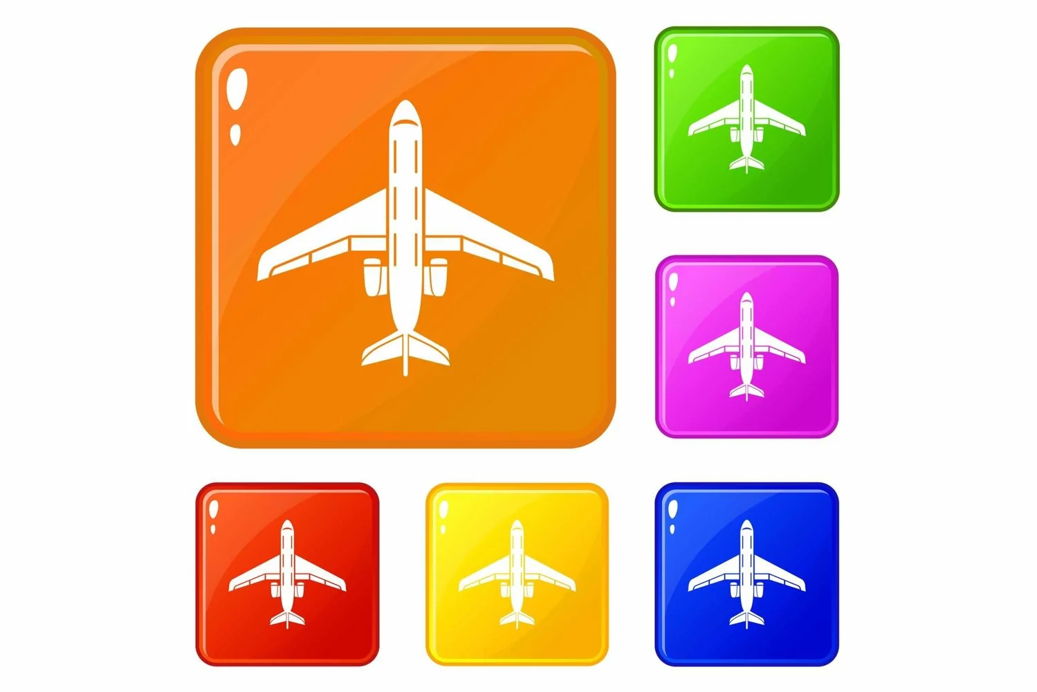 Passenger plane icons set collection vector 6 color isolated on white background