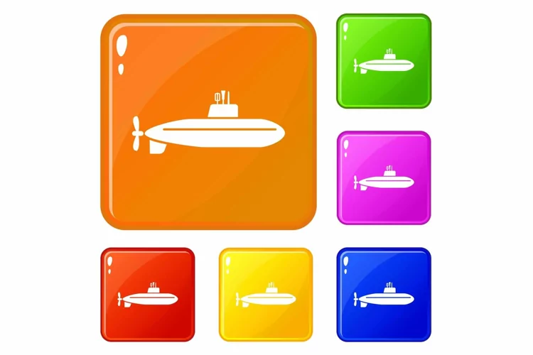 Large submarine icons set vector color example image 1