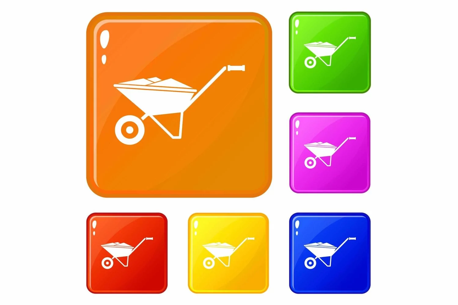 Wheelbarrow icons set collection vector 6 color isolated on white background