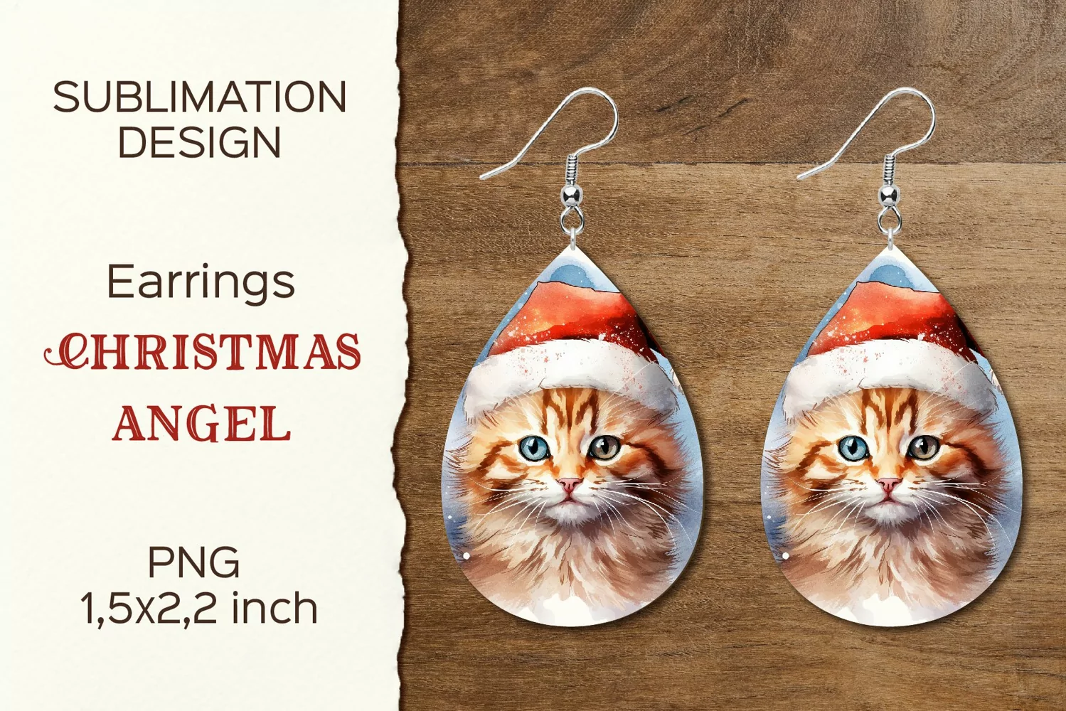 Christmas Cat | Earring Teardrop | Sublimation Design