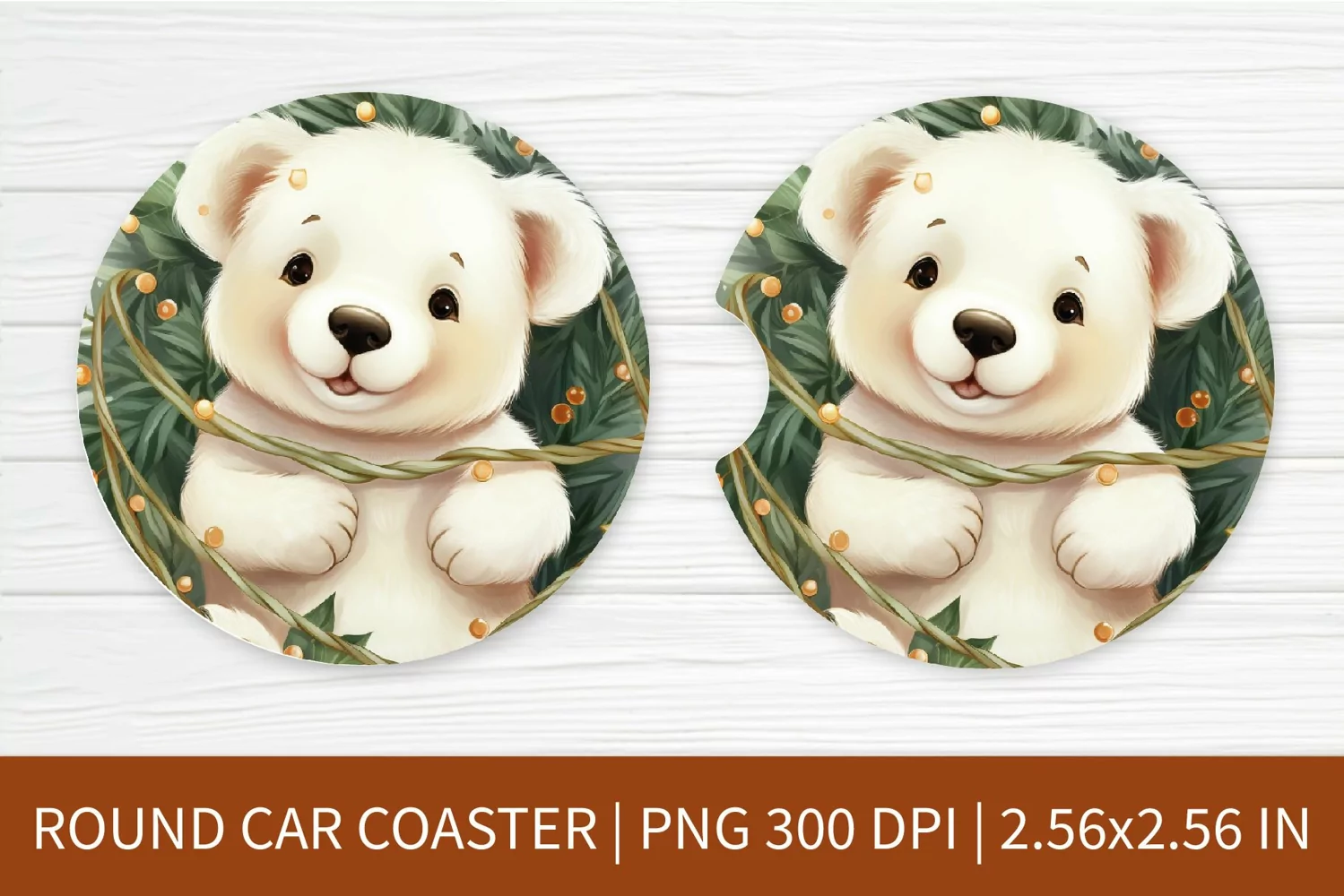 Round Car Coaster Sublimation Design | Christmas Bear PNG example image 1