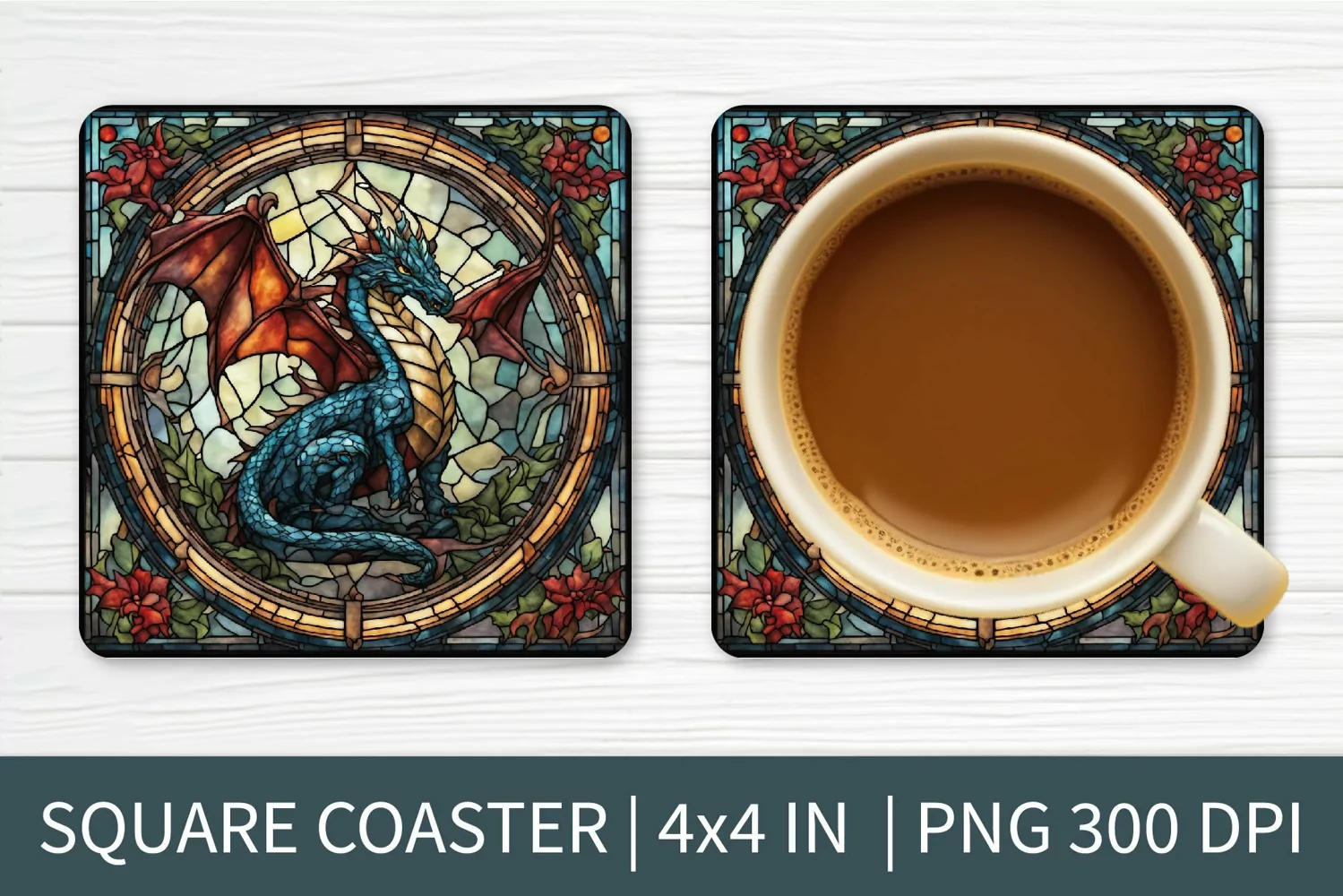 Stained Glass Dragon | Square Coaster Sublimation Design example image 1