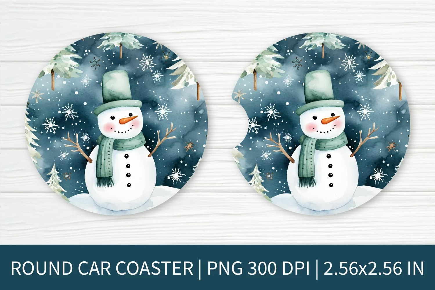 Similar Design Products to Round Car Coaster Sublimation Design | Christmas Snowman PNG