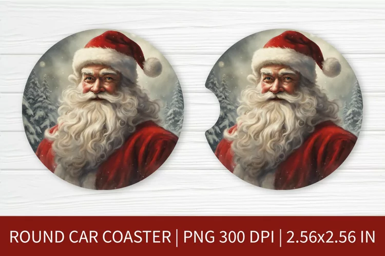 Similar Design Products to Round Car Coaster Sublimation Design | Santa Klaus PNG