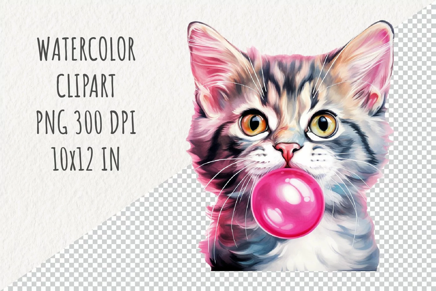 Cat with Gum | Sublimation Design | Watercolor Clipart