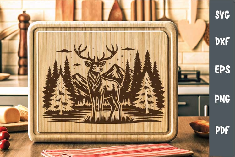 Similar Design Products to Vintage Deer Design, Cutting board laser SVG, Cricut