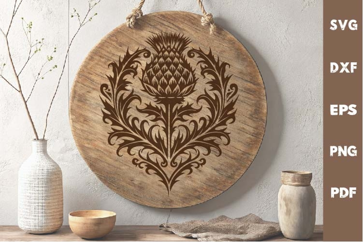 Celtic thistle SVG, Engraved Laser Cutting board SVG