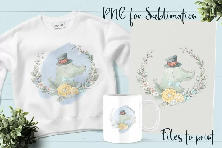 Cute Crocodile sublimation. Design for printing. example image 1