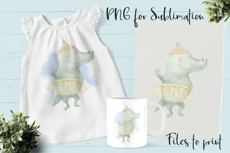 Cute Crocodile sublimation. Design for printing. example image 1