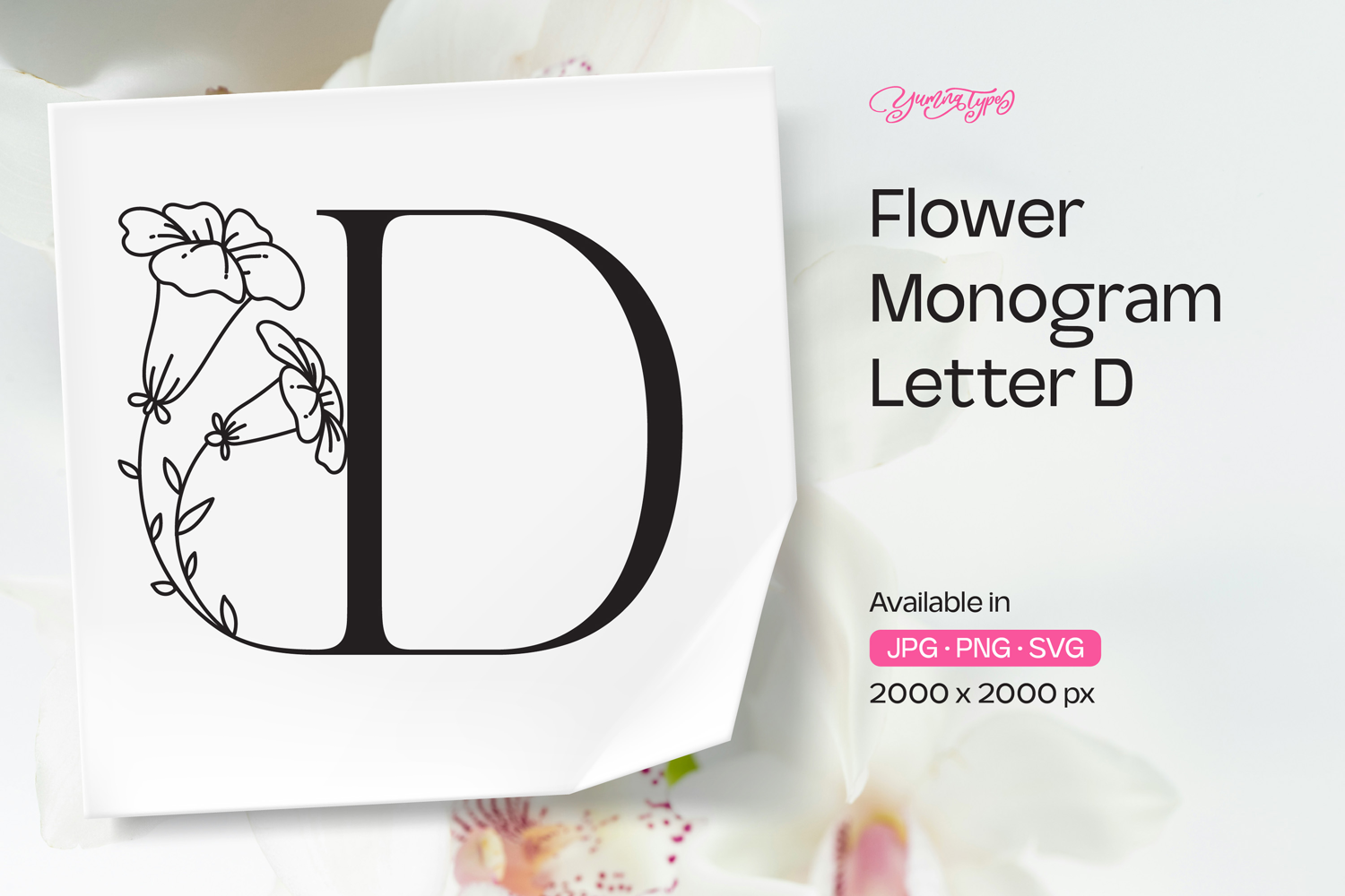 Morning Glory Flower Monogram Letter D example image 1