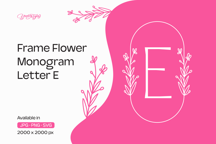 Lavender Line Frame Flower Monogram Letter E example image 1