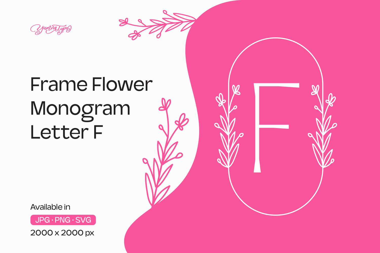 Lavender Line Frame Flower Monogram Letter F