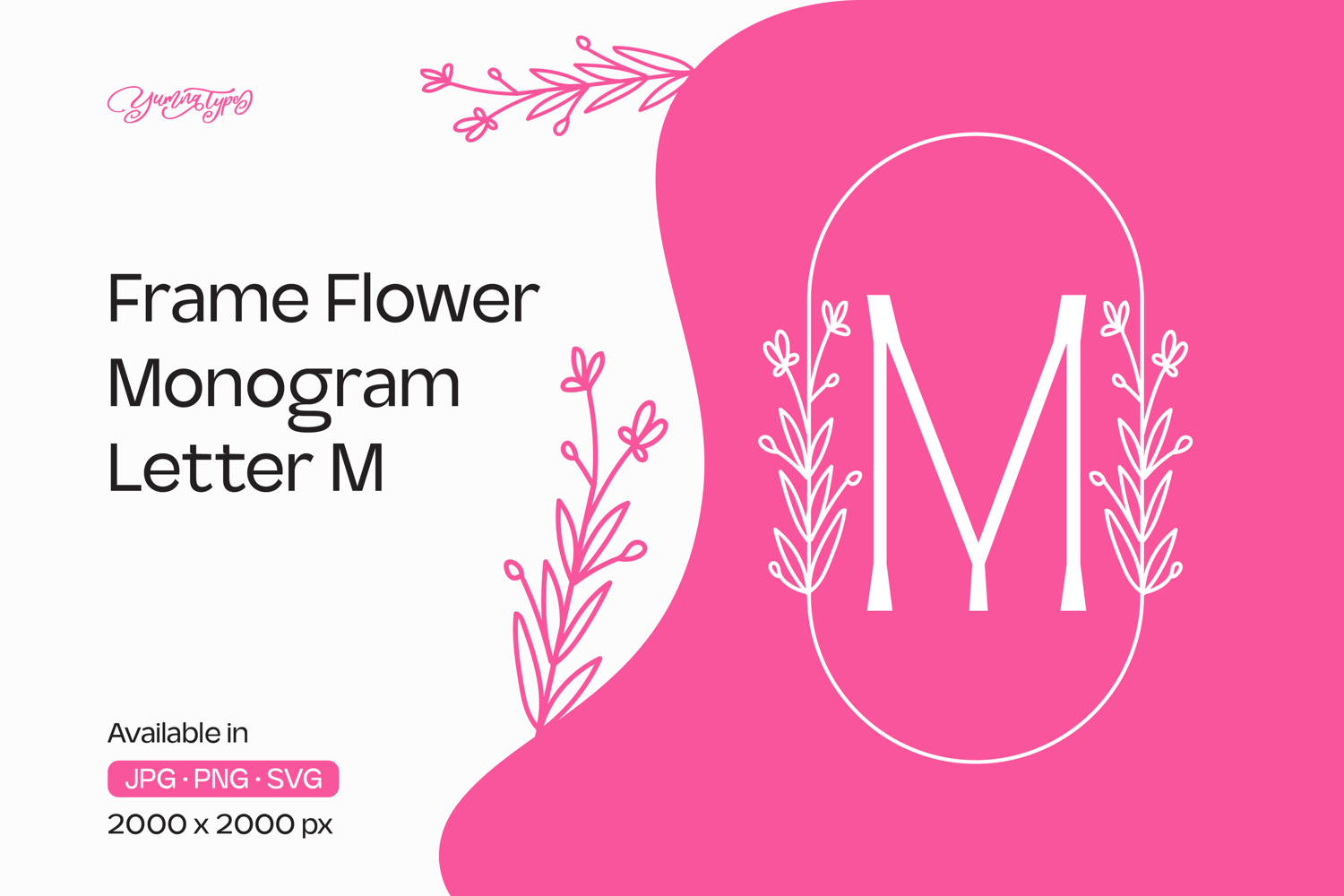 Lavender Line Frame Flower Monogram Letter M example image 1