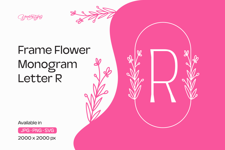 Lavender Line Frame Flower Monogram Letter R example image 1