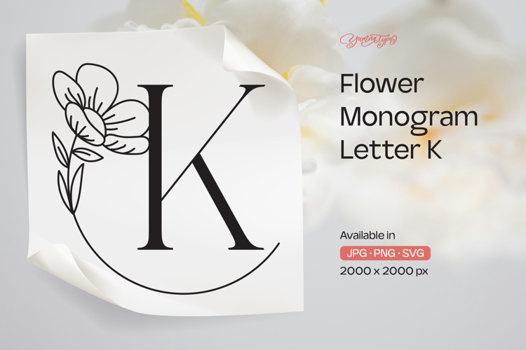 Buttercup Flower Monogram Letter K example image 1