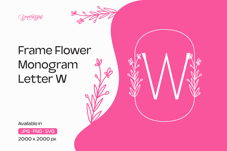 Lavender Line Frame Flower Monogram Letter W example image 1