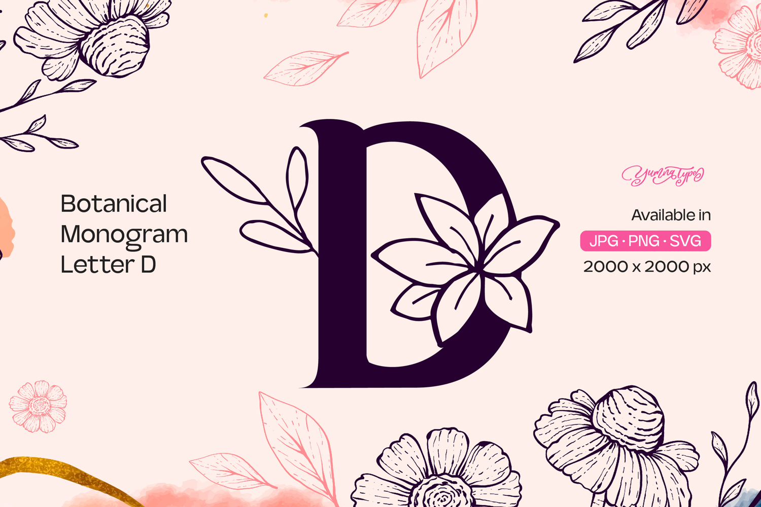 Botanical Monogram Letter D example image 1