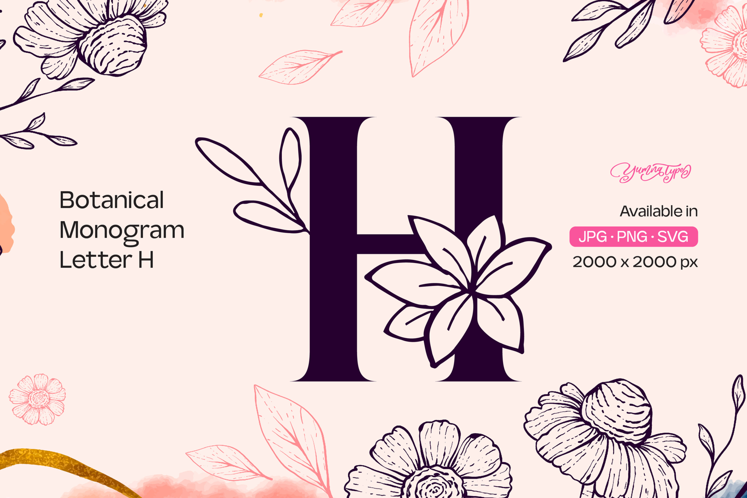 Botanical Monogram Letter H example image 1