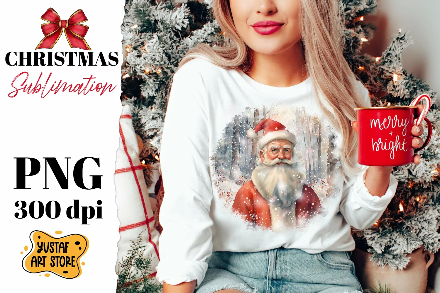 Similar Design Products to Christmas sublimation design. Santa Claus in winter forest