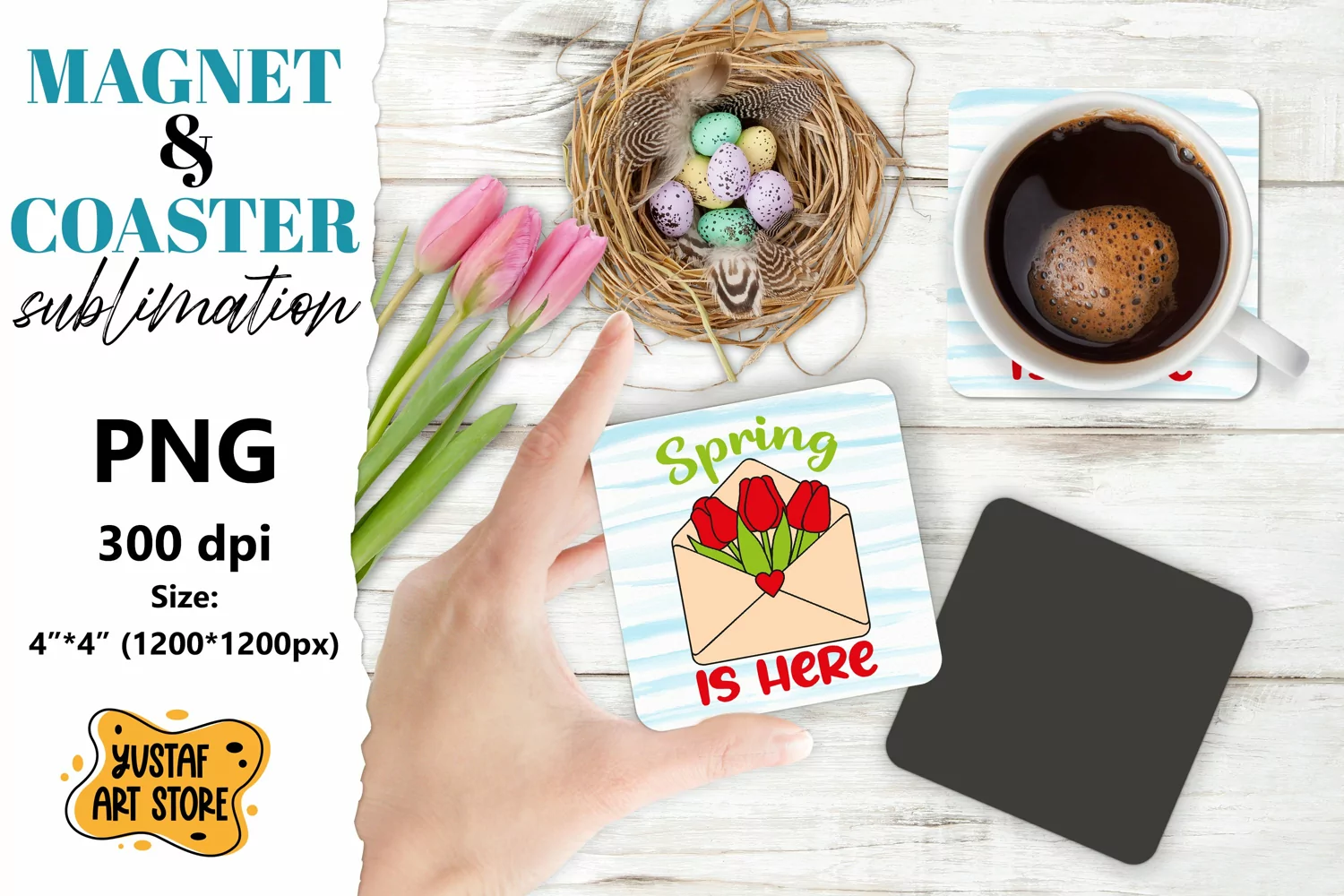 Spring Is Here Easter Coaster Spring Coaster Flowers Coaster Magnet Sublimation Square Coaster Sublimation Flowers Magnet Fridge Magnet Design Spring Magnet Easter Magnet