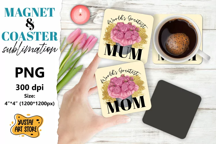 Flowers Sublimation Mama Sublimation Mothers Day Sublimation Mom Coaster Square Coaster Sublimation Mothers Day Coaster Fridge Magnet Design Mothers Day Magnet Mom Magnet World Greatest Mom