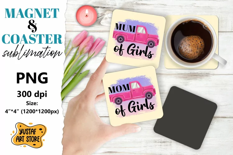 Mom Life Mom Of Girls Mama Sublimation Mothers Day Sublimation Mom Coaster Square Coaster Sublimation Mothers Day Coaster Fridge Magnet Design Mothers Day Magnet Mom Magnet