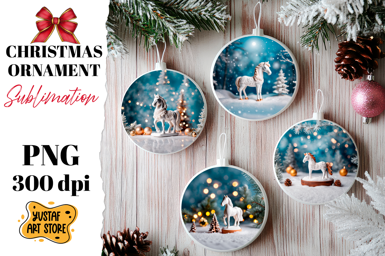Christmas ornament ceramic horse sublimation.