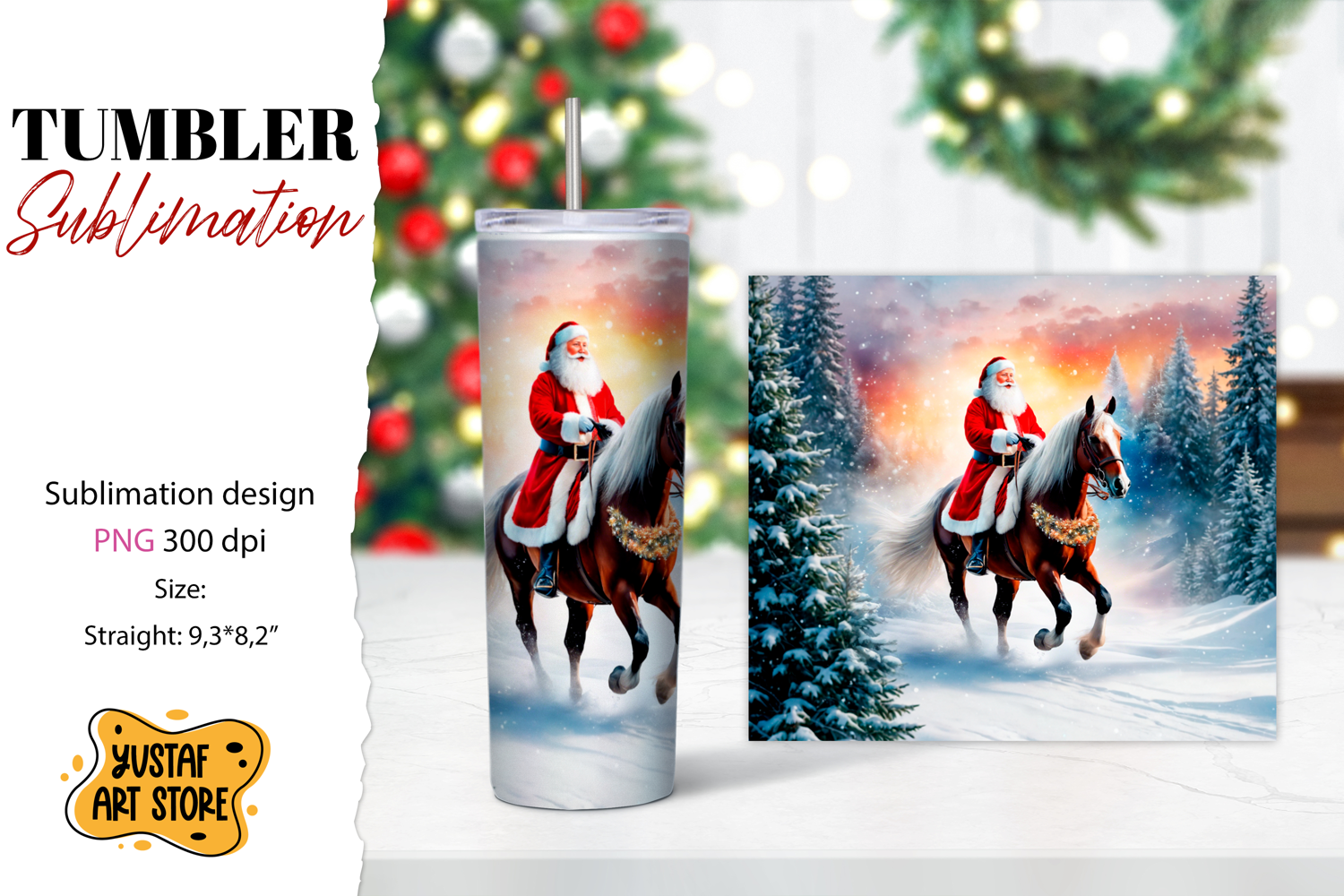 Christmas tumbler sublimation.Santa Claus and horse tumbler