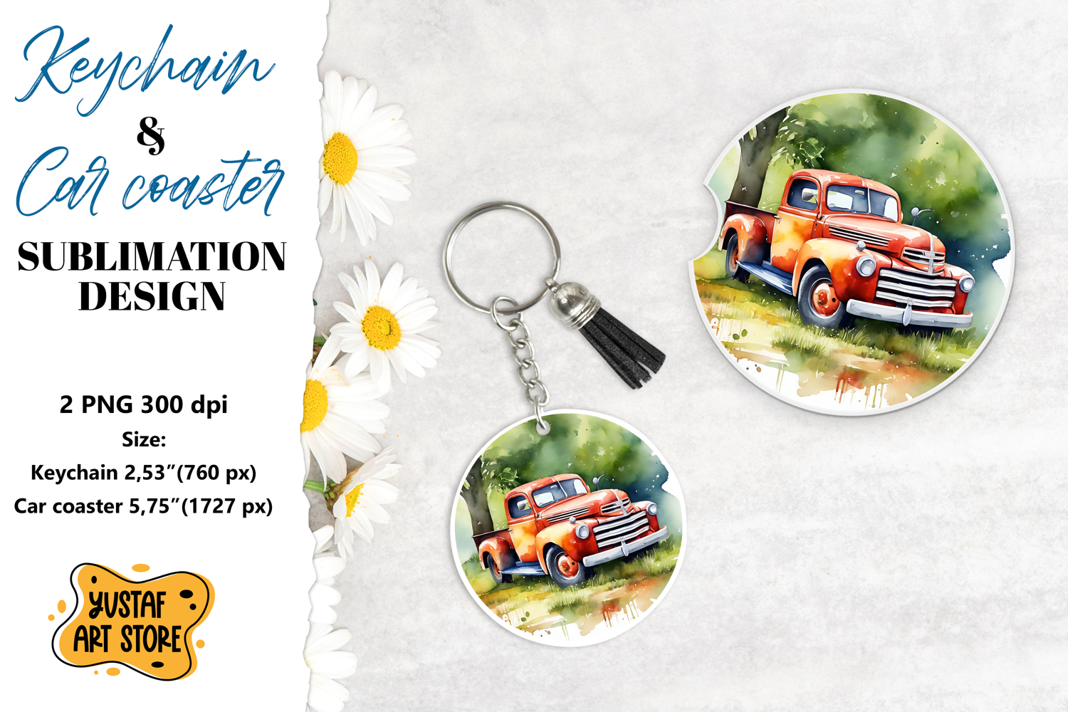 Farm Truck Vintage Truck Watercolor Truck Retro Truck Truck Sublimation Car Coaster Sublimation Round Coaster Keychain Sublimation Truck Keychain Truck Car Coaster
