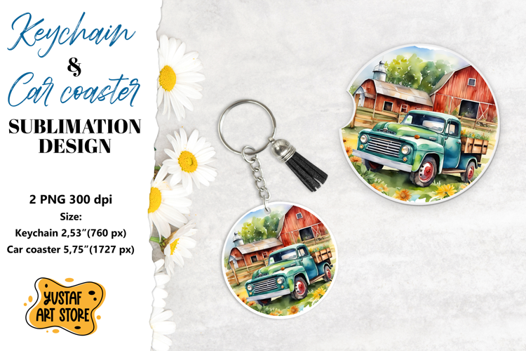 Farm Truck Vintage Truck Watercolor Truck Retro Truck Truck Sublimation Summer Truck Car Coaster Sublimation Keychain Sublimation Truck Keychain Truck Car Coaster