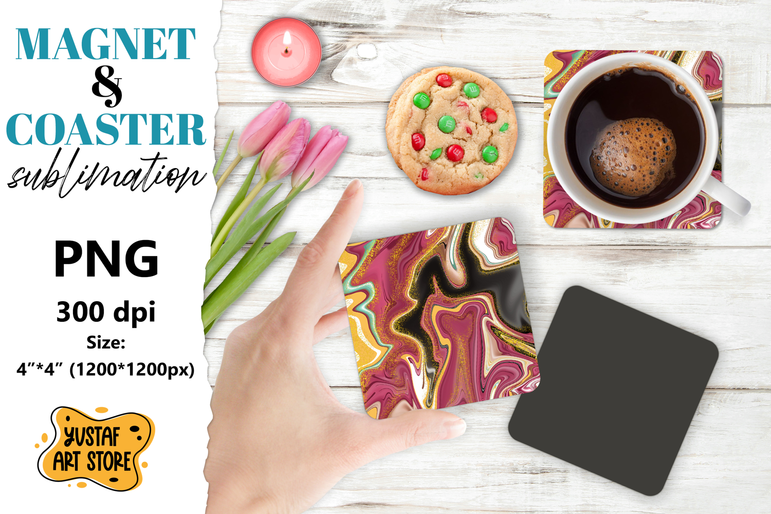 Hand painted fluid art illustration for printing and sublimation magnet or square coaster