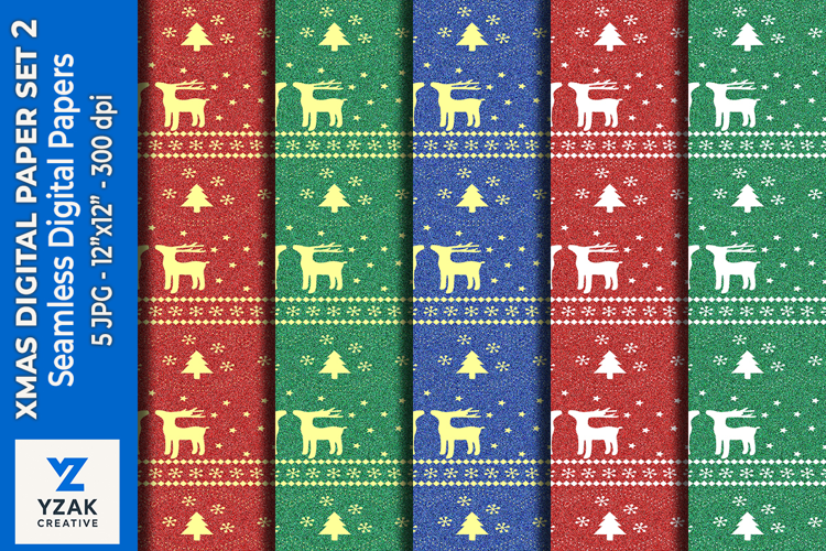 Bring festive cheer to your creative projects with this beautiful collection of 5 Christmas-themed digital papers, featuring seamless patterns of reindeer, snowflakes, pine branches, and songbirds on glitter-style textured backgrounds. These high-resolution 12”x12” (300 DPI) JPG files are perfect for all your holiday crafts and designs.