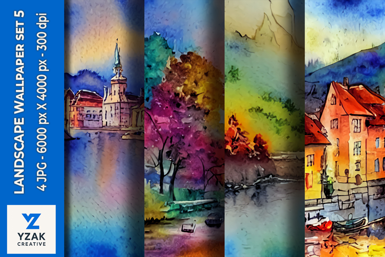 Transform your digital or print projects with this stunning collection of 4 landscape wallpapers, featuring vibrant, painterly scenes inspired by nature’s breathtaking beauty. Each artwork blends watercolor textures and artistic brushstrokes to create a serene and colorful atmosphere. These high-resolution 6000x4000 px (300 DPI) JPG files are perfect for a wide range of creative uses.