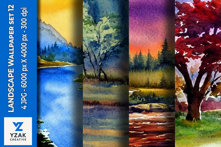Transform your digital or print projects with this stunning collection of 4 landscape wallpapers, featuring vibrant, painterly scenes inspired by nature’s breathtaking beauty. Each artwork blends watercolor textures and artistic brushstrokes to create a serene and colorful atmosphere. These high-resolution 6000x4000 px (300 DPI) JPG files are perfect for a wide range of creative uses.