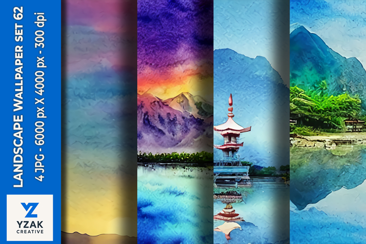 Transform your digital or print projects with this stunning collection of 4 landscape wallpapers, featuring vibrant, painterly scenes inspired by nature’s breathtaking beauty. Each artwork blends watercolor textures and artistic brushstrokes to create a serene and colorful atmosphere. These high-resolution 6000x4000 px (300 DPI) JPG files are perfect for a wide range of creative uses.