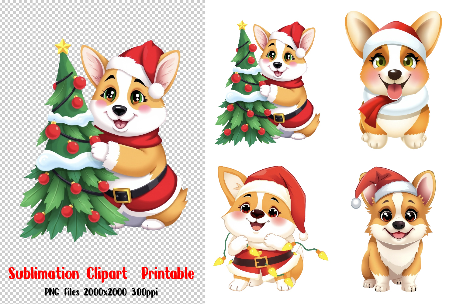 Christmas Dog, Dogs in Christmas Santa Hats Sublimation